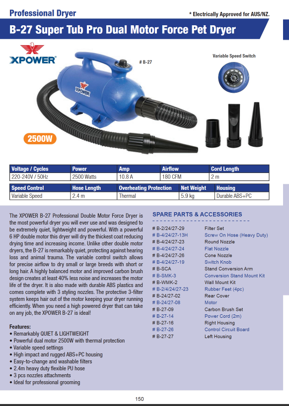 - XPOWER B-24 1800 Watt Thermal Ace Force Pet Dryer with Heat (B-24)