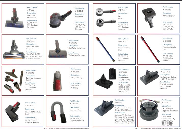 - Various Dyson V11 Cordless Stickvac models (SV14 models)