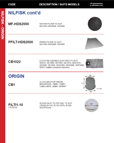 • Origin: 100BV, 150BV, 150BV-HEPA, 200BV, Sprint.