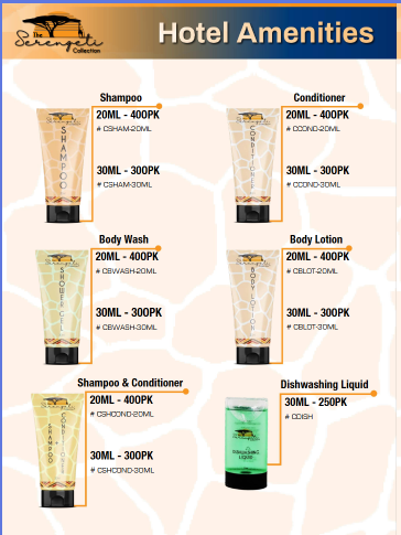 • These luxury hotel guest amenities are part of The Serengeti Collection by Cleanstar