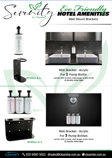• Serenity Hotel Amenities pump bottle range.