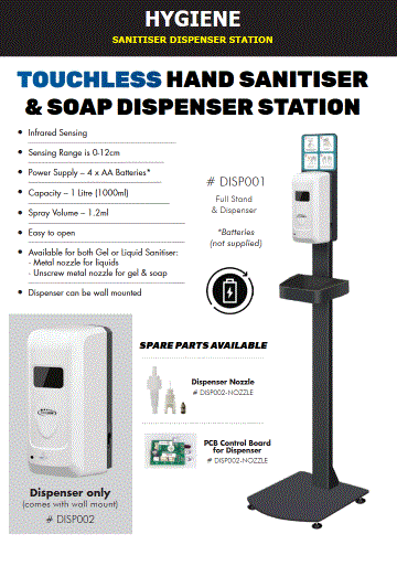 - Touchless Hand Sanitiser and Soap Dispenser Station Stand (DISP001)