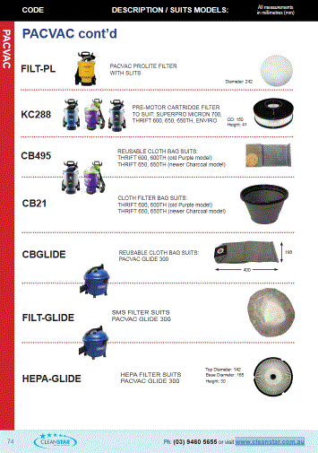 CLEANSTAR - CLOTH FILTER-PACVAC GLIDE/G128 | Cleaning Products Australia Group Cleaning Products Australia