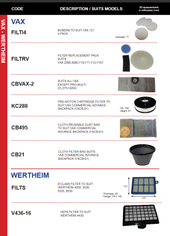 • For Electrolux and Wertheim vacuums