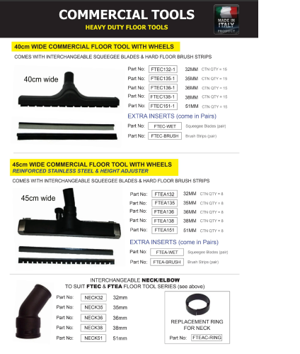 - For all wet and dry commercial vacuums that use 51mm tools and accessories