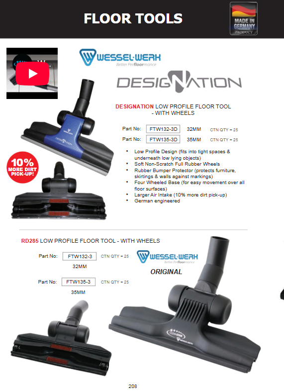 CLEANSTAR - WESSEL-WERK RD285 LOW PROFILE FLOOR TOOL - WITH WHEELS (32MM)
