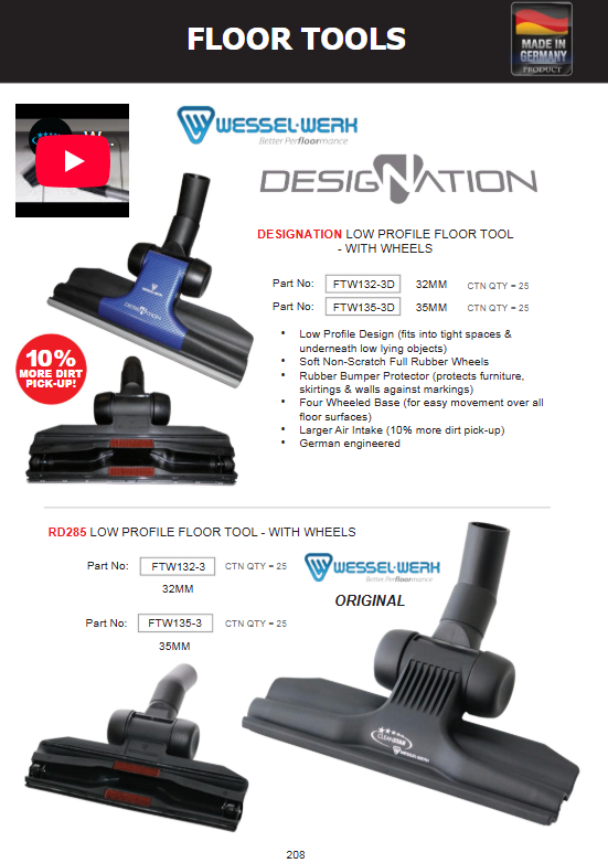 CLEANSTAR - WESSEL-WERK RD285 LOW PROFILE FLOOR TOOL - WITH WHEELS (35MM)