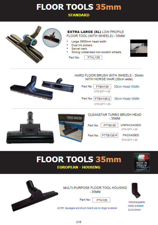 CLEANSTAR- EXTRA LARGE (XL) LOW PROFILE FLOOR TOOL (WITH WHEELS) - 35MM