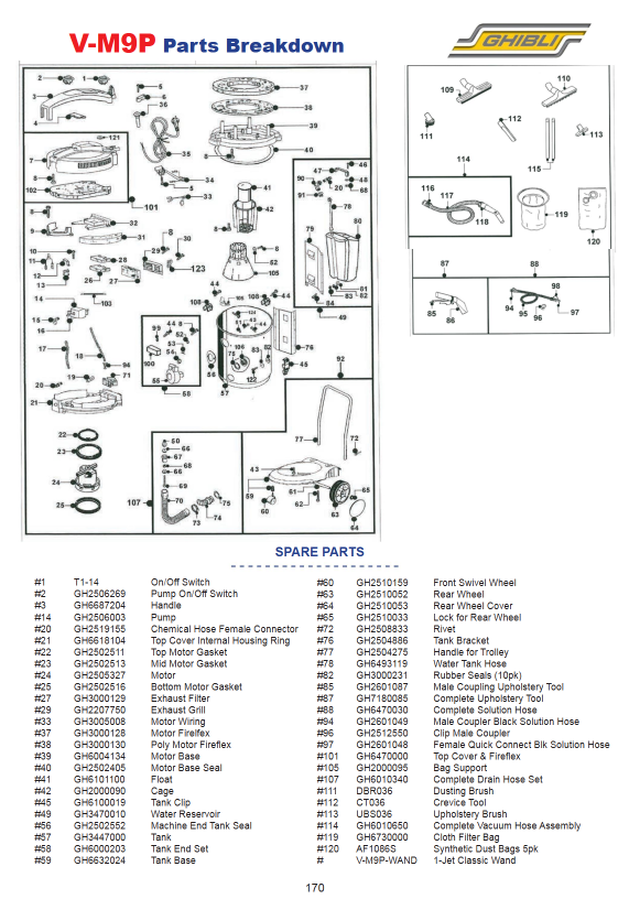 The Ghibli Top Cover & Fireflex - M9P is a genuine replacement part designed for the Ghibli M9P vacuum cleaner. Built for durability and heat resistance, it ensures secure housing and protection for internal components, maintaining optimal vacuum performance.