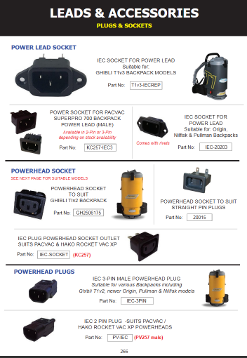 IEC Plug Socket Outlet Suitable for: Pacvac Superpro,Hako Rocket Vac XP