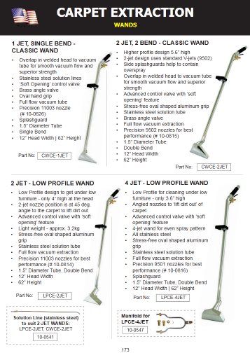- Single 4 jet low profile carpet extraction wand