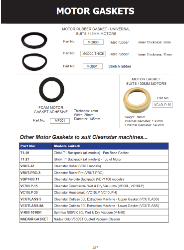 - This gasket suits vacuum motors with a 145mm fan base diameter