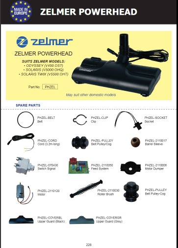 - Zelmer Powerhead (PHZEL) which is commonly used with the Zelmer Solaris, Solaris Twix and Odyssey vacuum cleaners