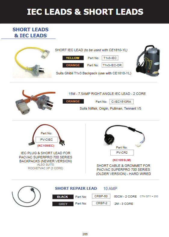 Short IEC Lead – Orange (34 cm) for Cleanstar Ghibli T1v3 vacuum. Durable orange IEC power cable, compact and reliable for professional cleaning use.