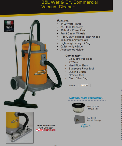Whether you're dealing with dust, debris, or liquid spills, the Ghibli 1400W is the reliable choice for professional-grade cleaning.