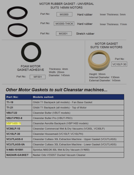 CLEANSTAR-RUBBER MOTOR GASKET-VBP1400