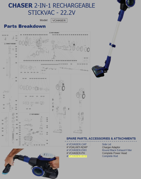 Keep your cleaning system operating at optimum performance with this genuine complete rod replacement designed specifically for the Chaser 2‑in‑1 rechargeable stick vacuum (SKU: VCHASER‑ROD). This robust rod ensures the correct structural alignment of your unit, maintaining ease of manoeuvrability, tool attachment stability, and overall usability.