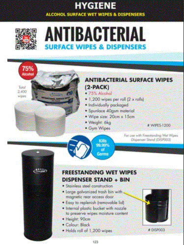 - Suitable for use with Freestanding Wet Wipes Dispenser Stand and Bin (DISP003)